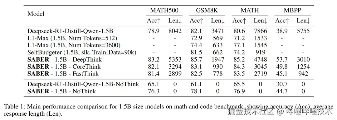 在 1.5B 模型规模下,SABER 的各模式均优于基座模型。