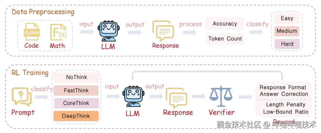 尽管已有工作尝试通过指令微调、长度约束、奖励重塑等方式来压缩输出,但这些方法多依赖静态规则或任务无关的启发式机制,既无法根据问题难度动态调节推理长度,也无法真正让用户掌控模型的推理深度。