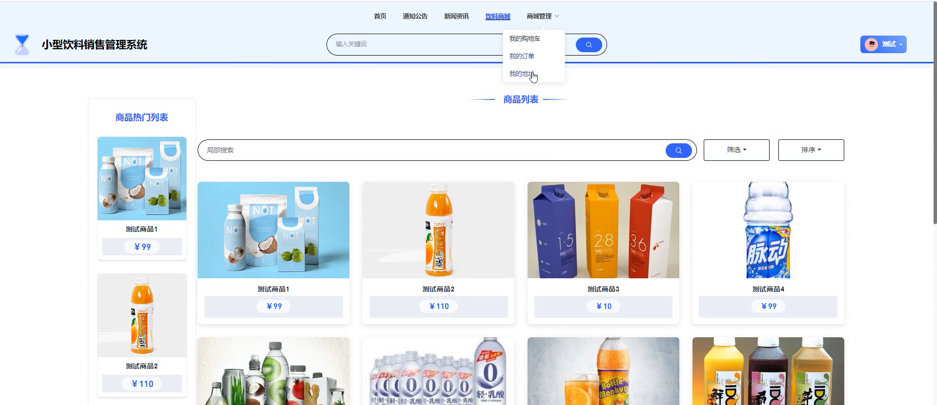 - 用户模块:核心满足消费者购买与订单跟踪需求,包括注册登录(账户安全与密码找回)、饮料商城(商品浏览、搜索、分类筛选、加入购物车)、我的订单(历史订单详情、订单状态查询)、订单配送(配送方式选择、实时配送状态跟踪)。