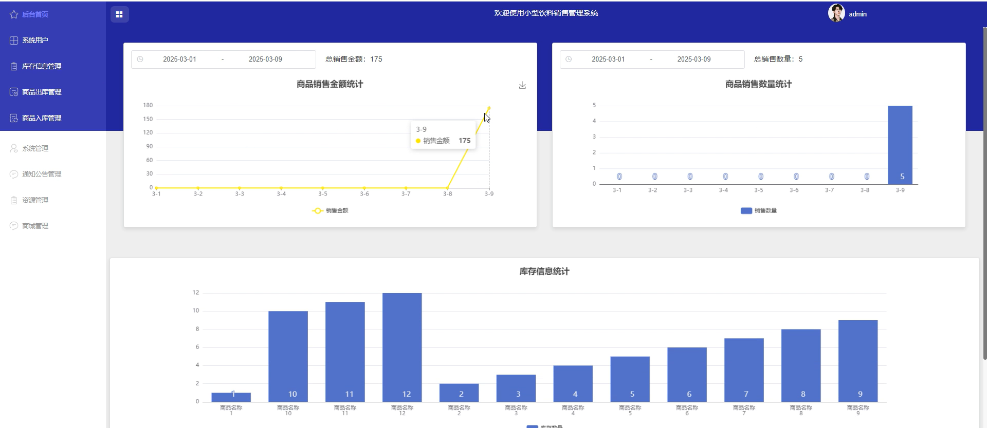 - 数据访问层:基于 MySQL 设计 6 张核心数据表(饮料商城表、商品入库表、商品出库表、库存信息表、订单表、用户表),通过 E-R 图梳理实体关系,保障数据一致性。