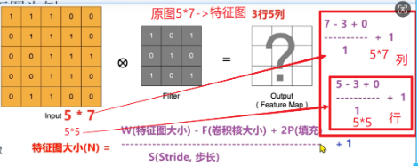 计算特征图的大小 特征图的大小 N=floor((W-F+2P)//S+1)