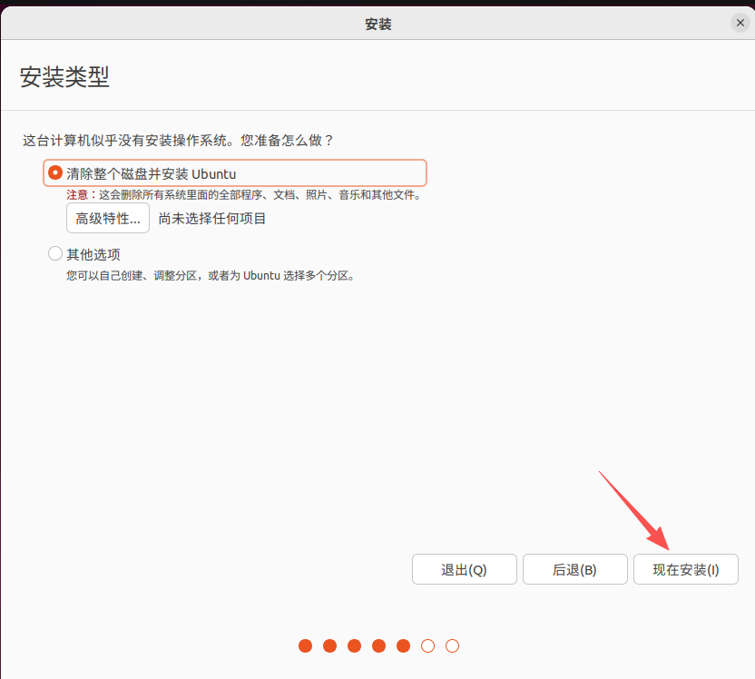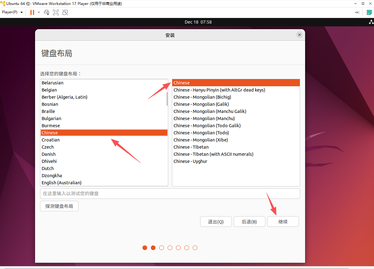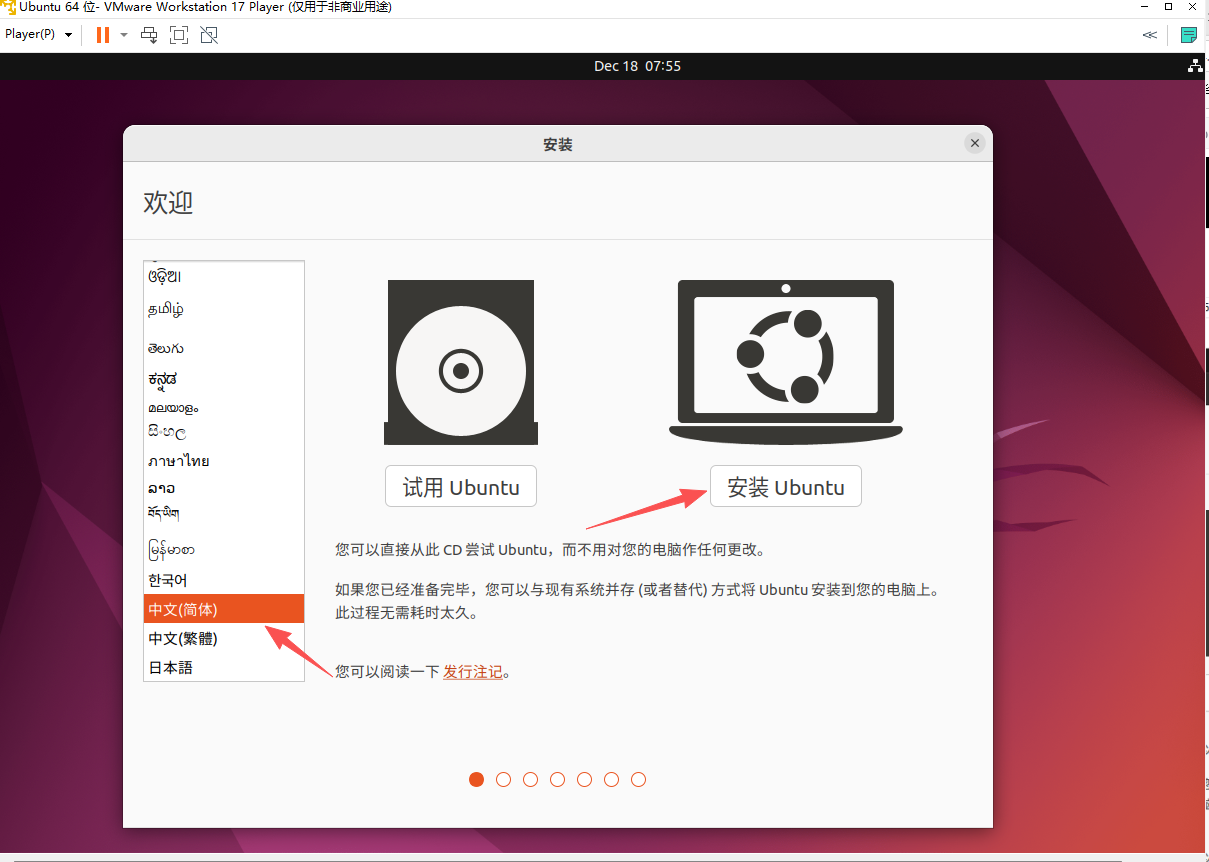 - 进入虚拟机后,选择中文简体,安装ubuntu