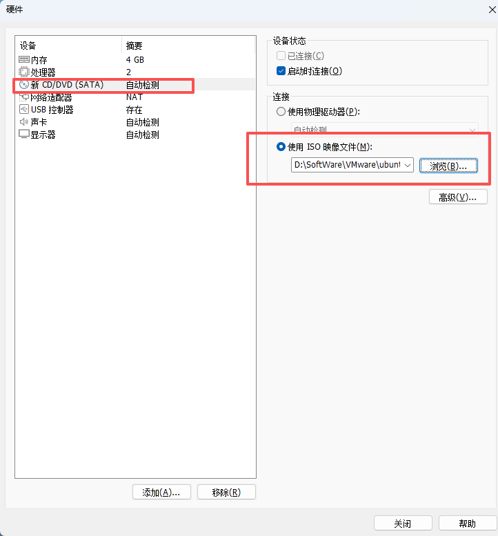 - 选择之前下载好的ubuntu映像文件,然后点击关闭,再点击完成