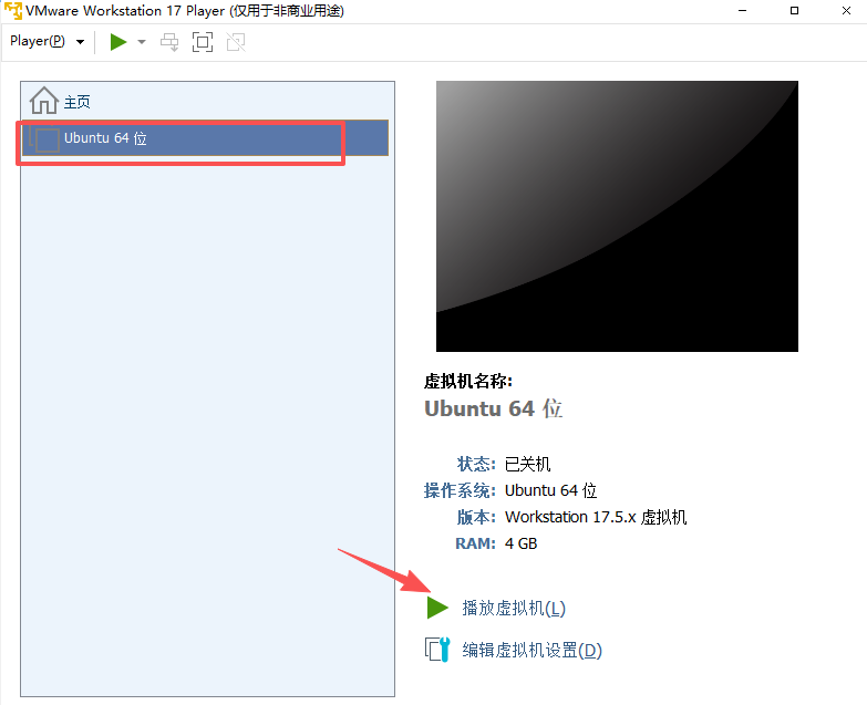 - 选择刚刚创建好的虚拟机,点击播放虚拟机