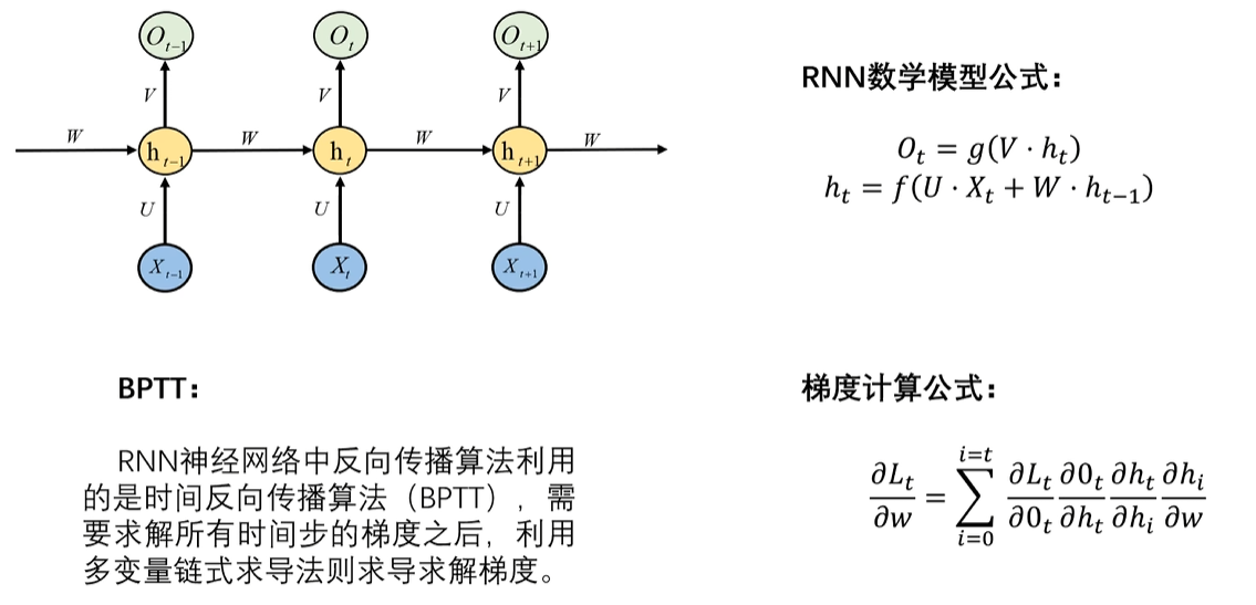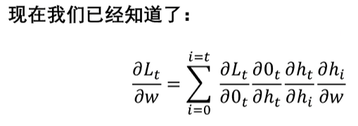 如图右下角,因为ht时刻的信息,实际上是包含前面ht-1、ht-2....前面所有时刻的信息的,因此,对当前ht时刻求导的时候,应该是要对ht前面所有时刻进行求偏导,然后再累加起来,才是真正W梯度更新的导数