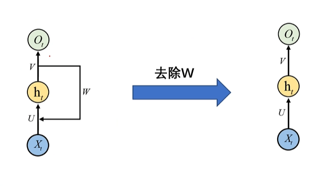 其实循环神经网络去掉W,不再以输出作为输入,就是全连接神经网络了,为什么呢?