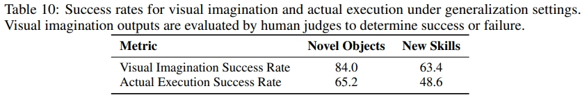 新技能场景中,视觉想象成功率 63.4%,实际执行成功率 48.6%;
