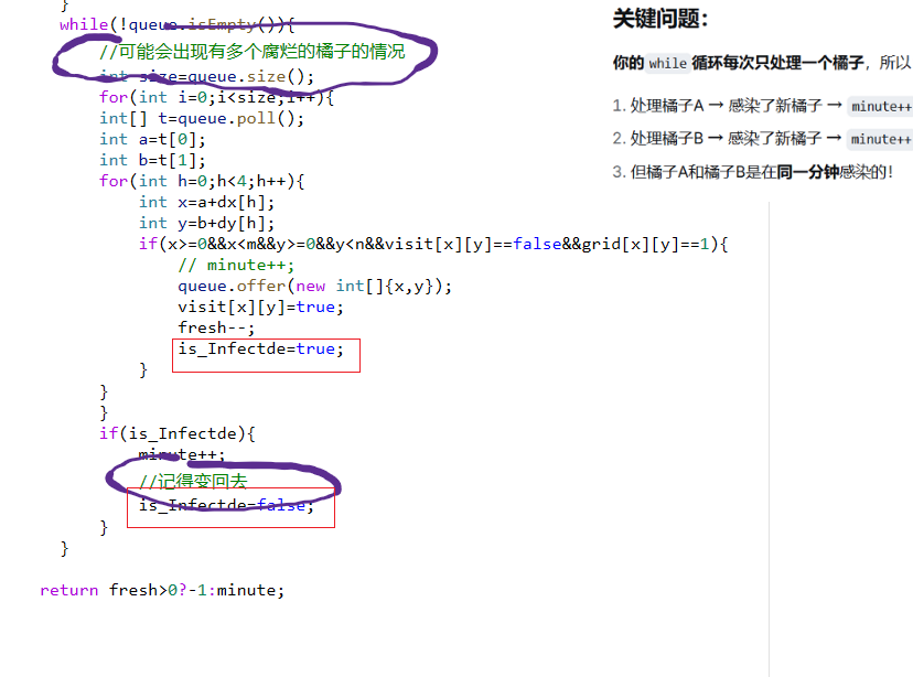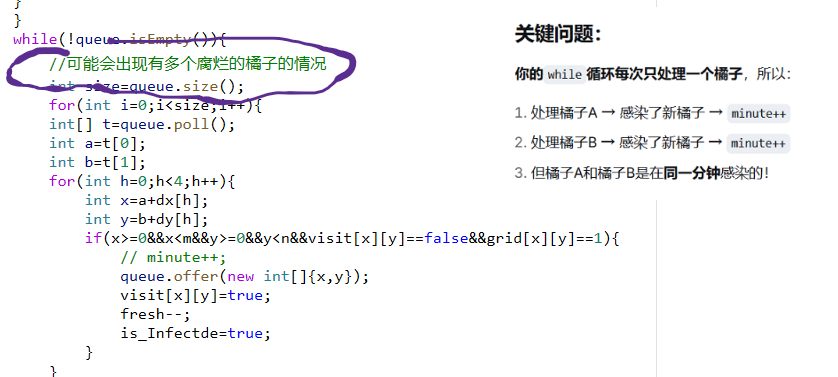 //因为可能一次有多个腐烂橘子加入队列 同时是腐烂周围的橘子,本质上都是算一分钟