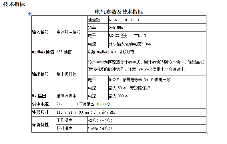 1) 高速计数器可以对高速脉冲进行计数,计数结果可以通过 RS485 方式对外输出,满足 Modbus RTU 协议规范,最高支持对 5Mhz 的高速脉冲进行计数,在配置为 AB 正交模式统计高速脉冲时,即一个完整 AB 周期计数 4 次,相当于经过 4 倍频,也就是实际最高可以支持 20MHz 的高速脉冲。