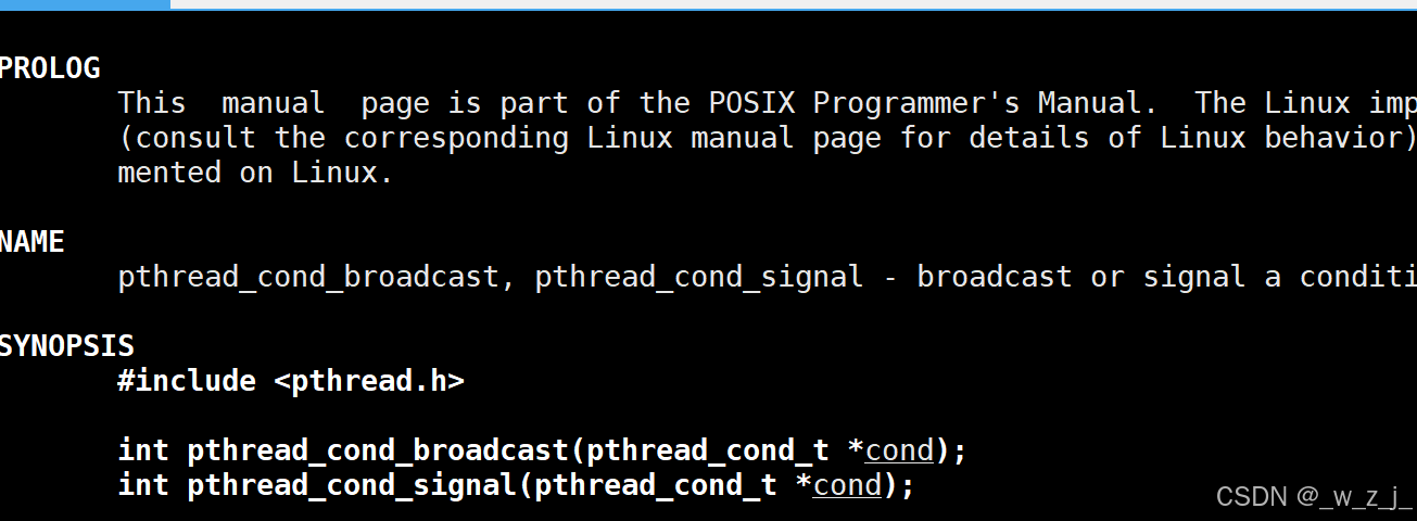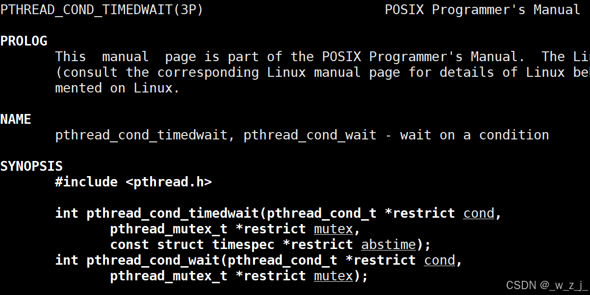 接口:pthread_cond_wait,用于使线程在条件变量上等待,直到该条件变量被另一个线程的信号(pthread_cond_signal)或广播(pthread_cond_broadcast)唤醒。