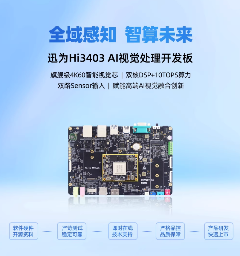Hi3403作为一款面向多种智能视觉场景的处理器,具备出色的图像处理能力和丰富的接口资源。配合迅为其精心设计的开发板,您将获得: