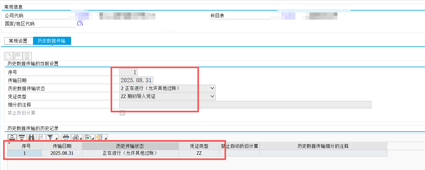 在事务代码 FAA_CMP 中设置历史传输日期。