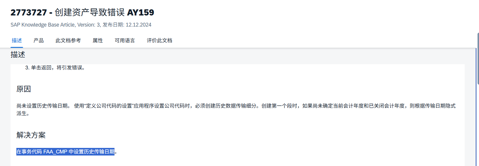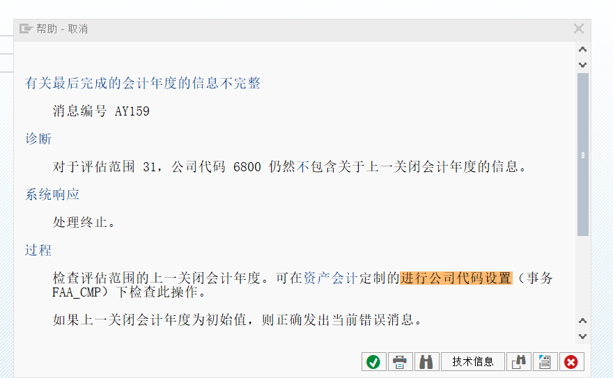 首先我尝失将FAA_CMP的传输日期删除后,重新创建生成,之后重新运行对应的事务码,发现仍会出现报错。