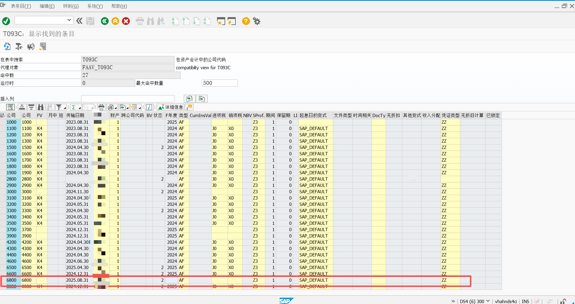 发现T093C表对应的公司代码数据存在问题,编辑对应的数据,将对应公司代码的数据进行补全