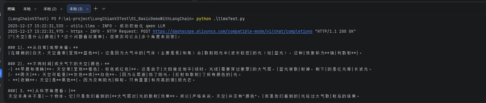 运行llmTest.py ,可以直接调用大模型接口,完成响应。改脚本可用于检查大模型参数是否有问题。