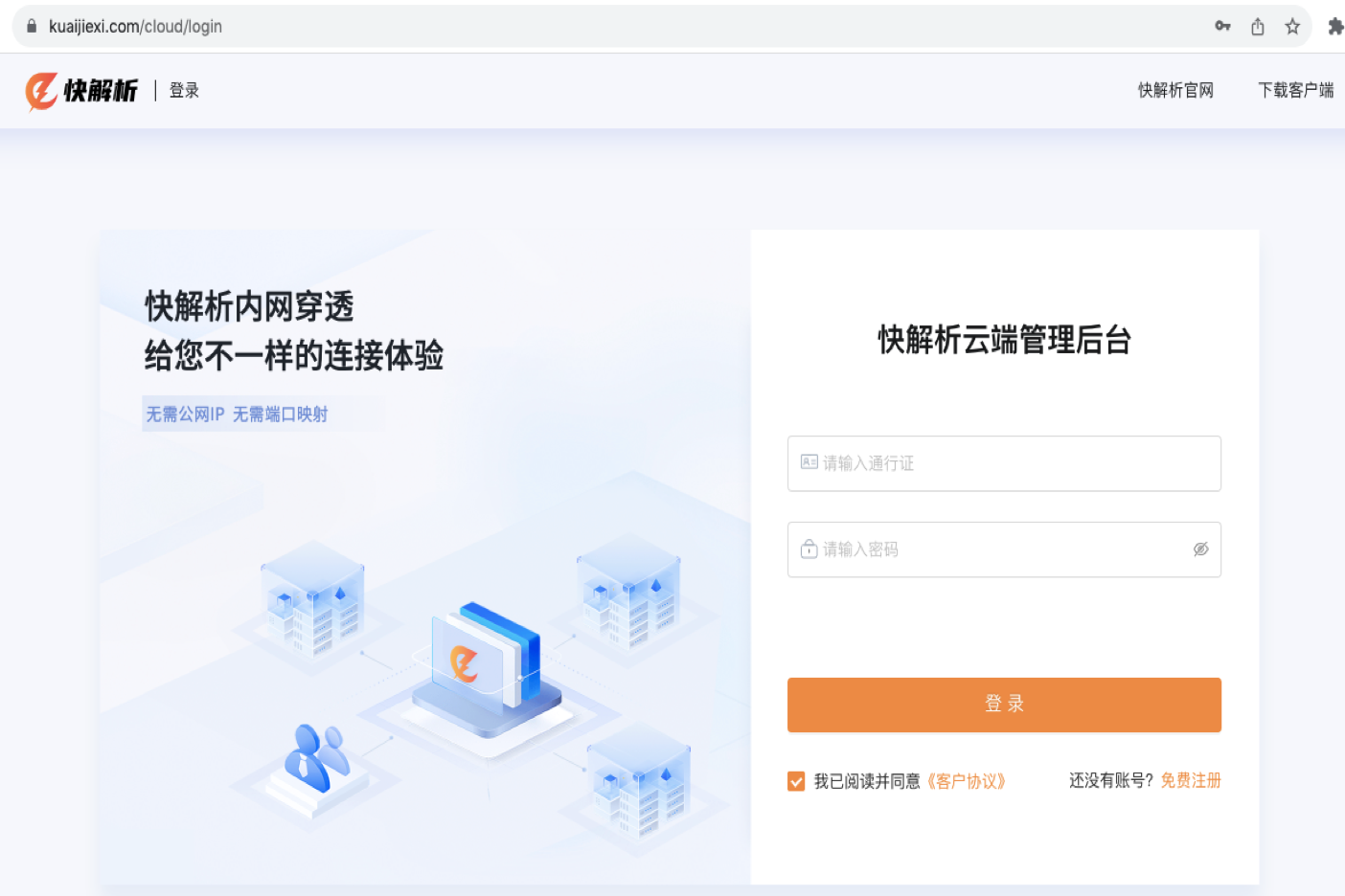 安装完成后,打开快解析程序,输入您注册的快解析账号进行登录