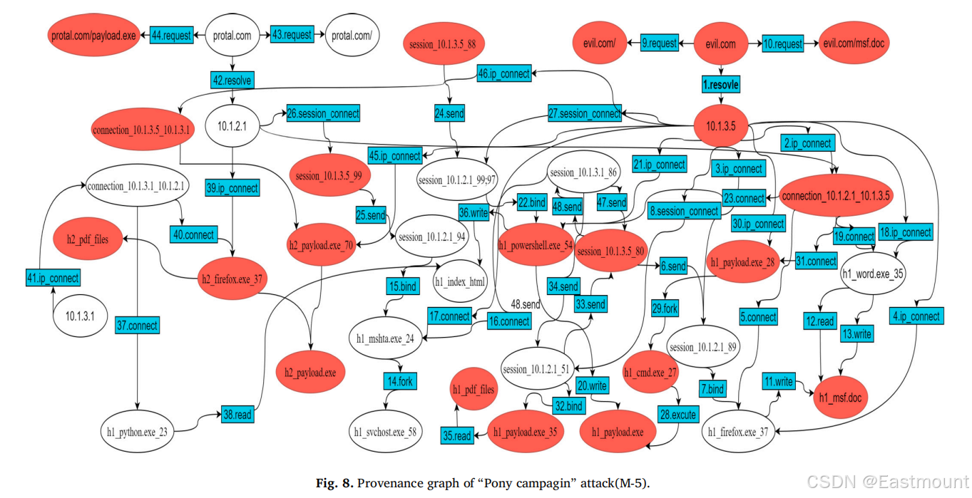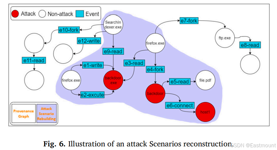 - 攻击序列构建:设置攻击实体集合,基于实体在溯源图检索相关领域子图,并基于这个子图把所有和攻击实体相关的事件作为攻击序列