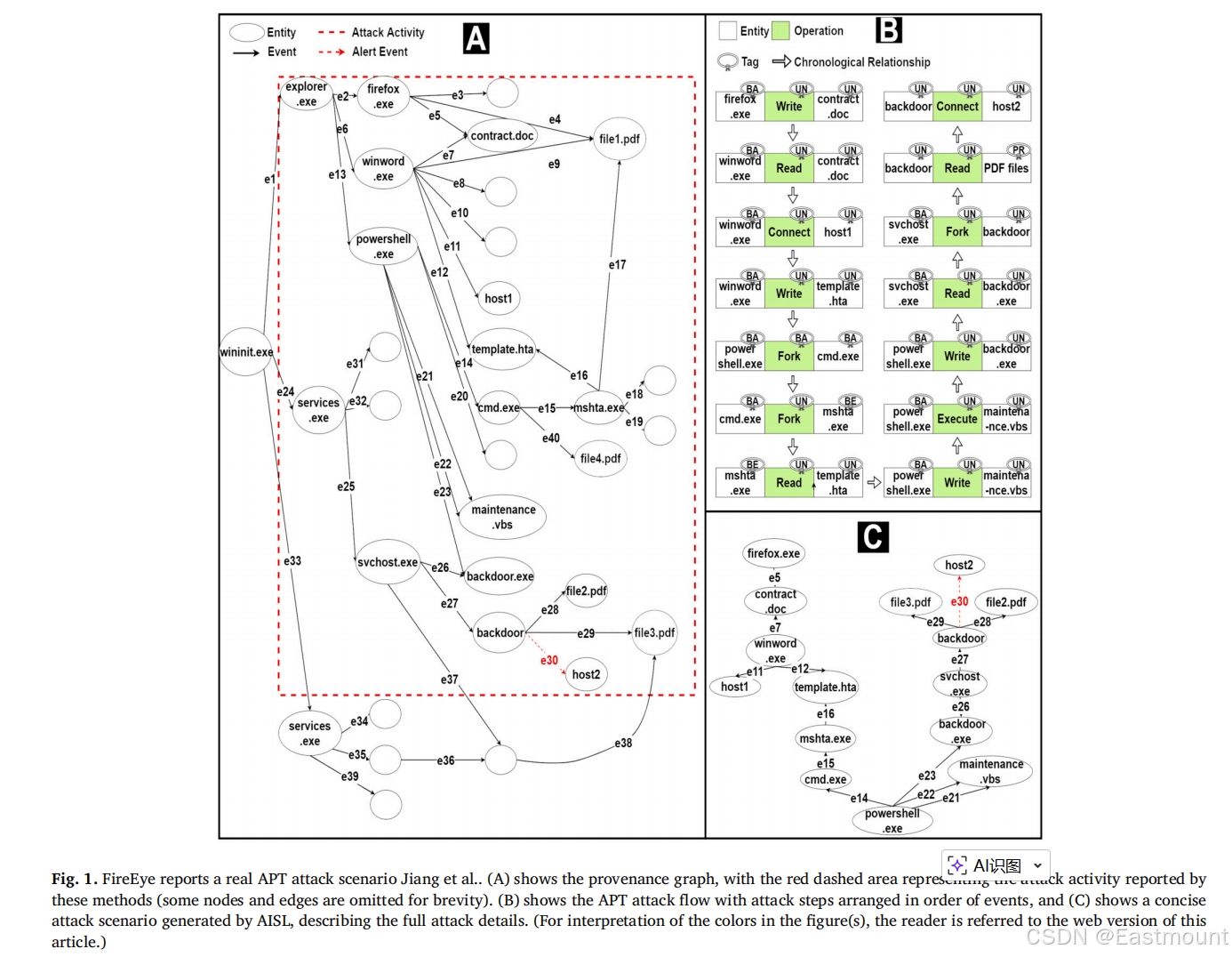 前一篇博客介绍一种基于LLM少样本多标签的Android恶意软件检测方法,旨在提升噪声场景和数据稀缺场景下的检测鲁棒性。本文提出了一种新颖的攻击意图驱动与序列学习相结合的APT检测方法(Attack Intent-driven and Sequence-based Learning,AISL)。本文构建了面向网络事件的专用本体模型,设计并生成融合多源审计数据的溯源图,依据攻击意图对潜在攻击行为进行识别与标注。注意,由于我们团队还在不断成长和学习中,写得不好的地方还请海涵,希望这篇文章对您有所帮助,这些大佬真值得我们学习。fighting!