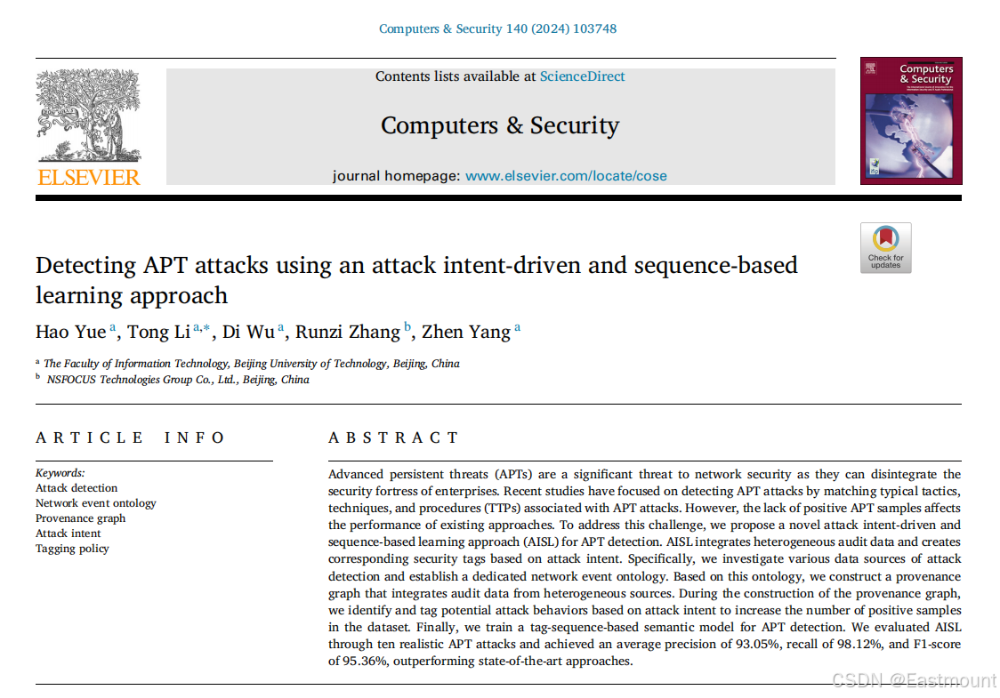 论文阅读\] (45)C\&S24 AISL: 基于攻击意图驱动与序列学习方法的APT攻击检测