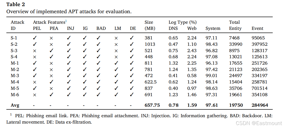 表2展示了AISL 所评估的数据集覆盖了多种不同阶段的 APT 攻击流程,并且数据规模、日志类型和攻击特征具有显著多样性,从而验证了模型在多场景下的泛化能力和鲁棒性。