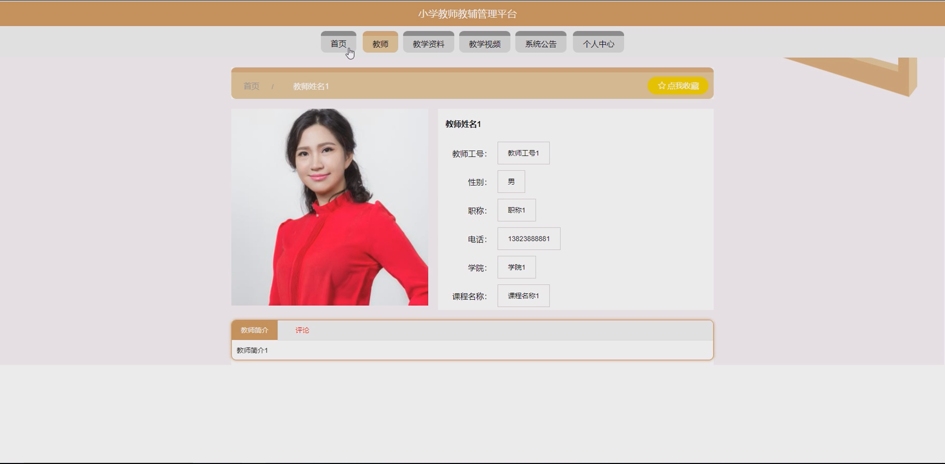 教育价值 :为小学教师提供高效教辅管理工具,整合教学资源与教学计划,提升备课效率,优化教学环节;技术价值 :验证SSM框架在教育类轻量化平台开发中的适配性,为同类教育管理系统提供技术参考;实践价值:涵盖系统设计、开发、测试全流程,符合计算机专业毕业设计的工程实践要求,具备明确的教育场景落地意义。