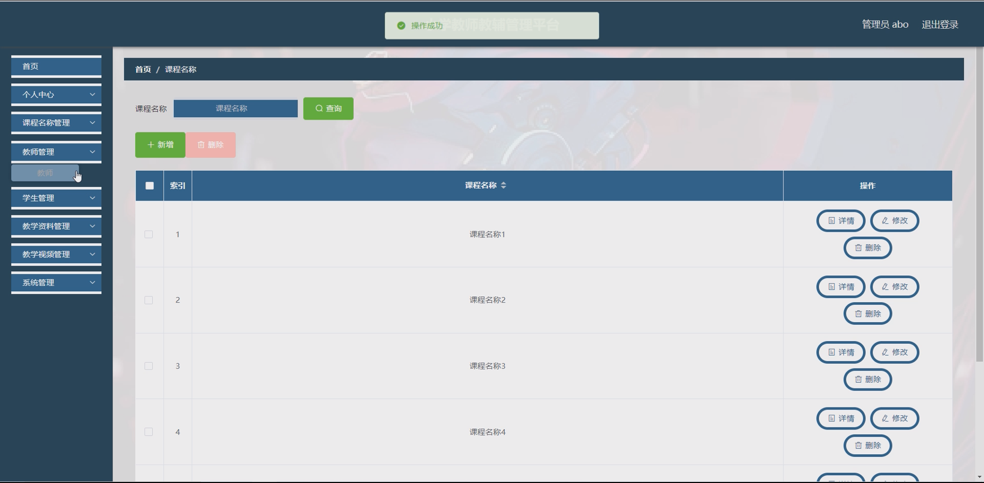 系统项目功能:课程名称,教师,学生,教学资料,教学视频,动画片,课程表