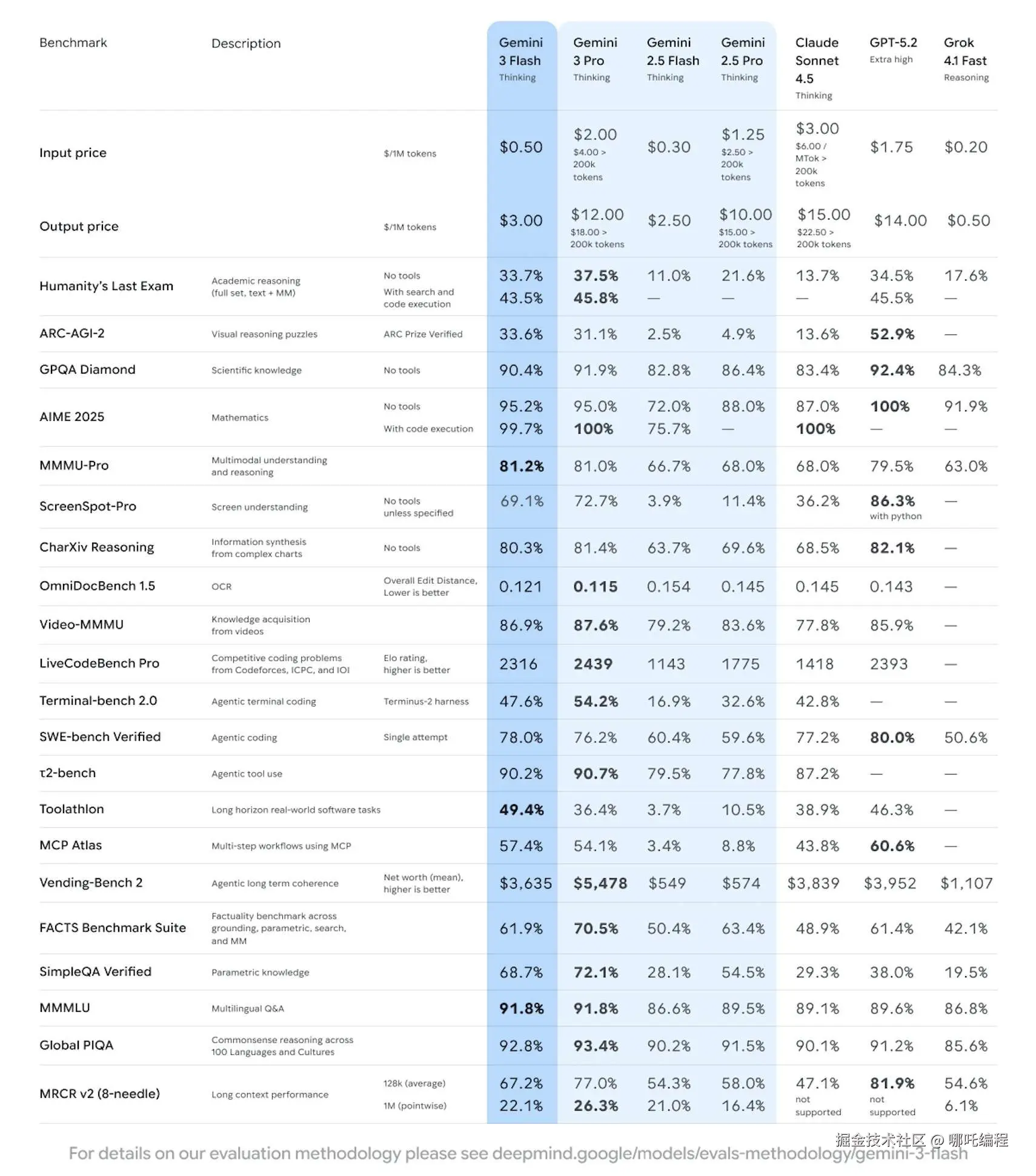 相比于那些昂贵的推理模型,Gemini 3 Flash 的成本只有它们的几分之一,甚至几十分之一。结合它 100万 Token 起步的超大上下文窗口,你完全可以把整本书、整个代码库扔给它,让它不知疲倦地为你分析,而不用担心信用卡被刷爆。