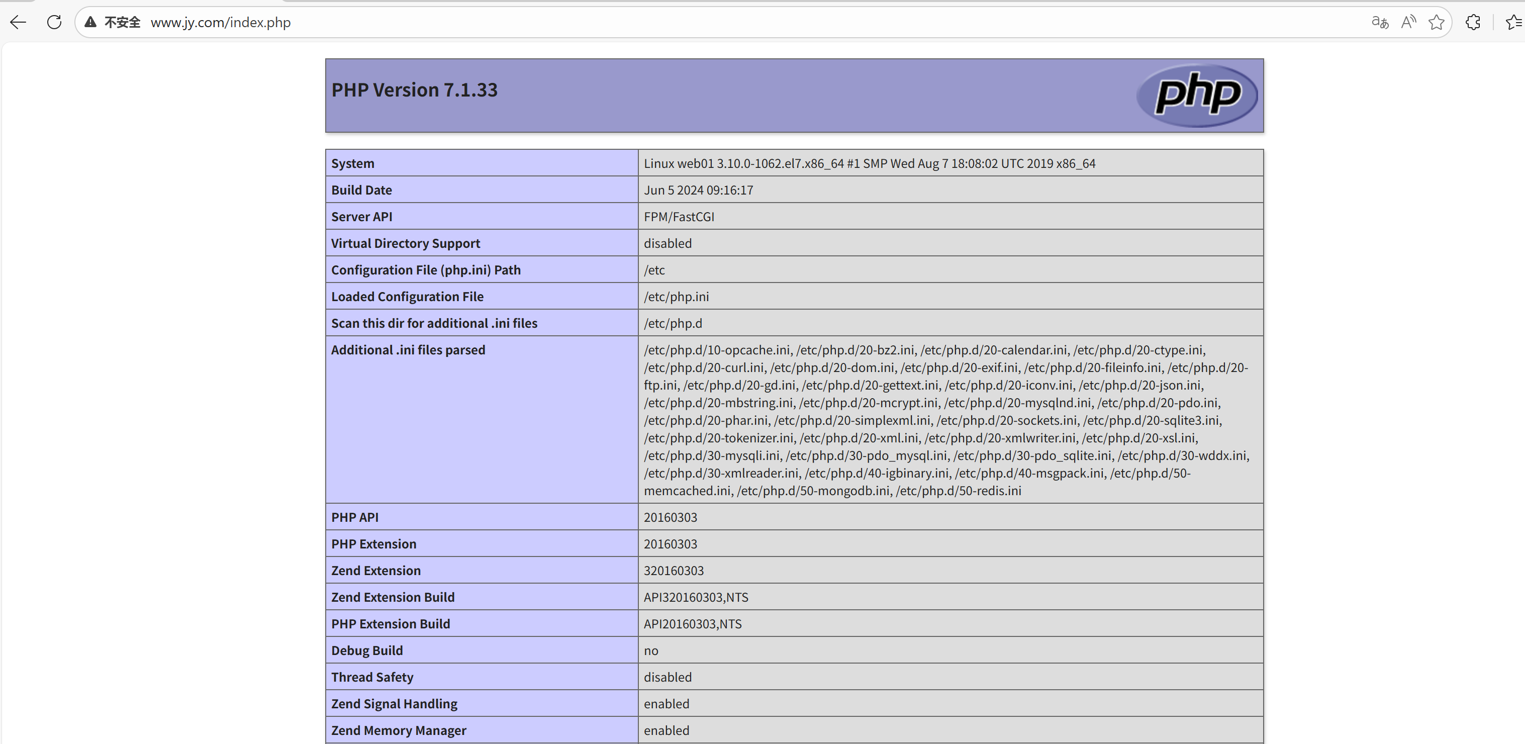 [root@web01 ~]# echo "<?php phpinfo(); ?>" > /code/www/index.php