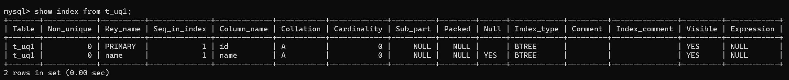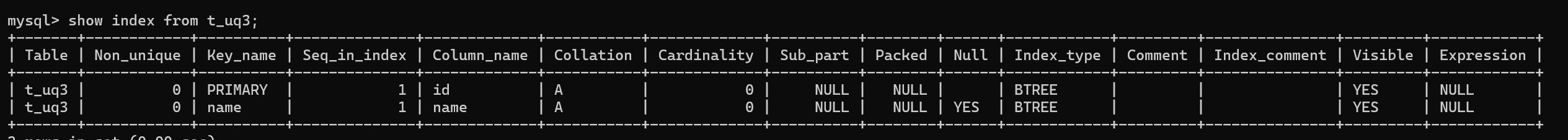 show index from 表明