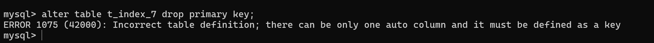主键索引的列属性有auto_increment,此时如果直接删除主键索引的花会报错