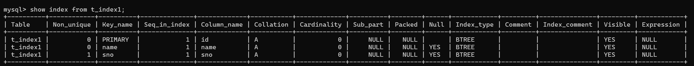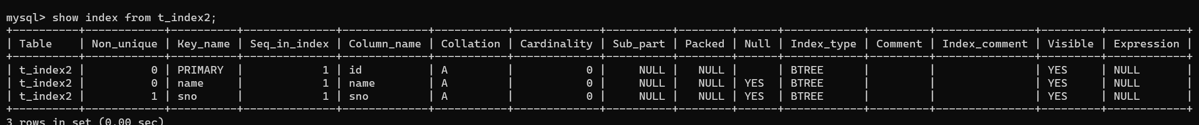 ALTER TABLE t_index2 ADD INDEX(sno);