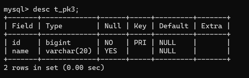 CREATE TABLE t_pk2(