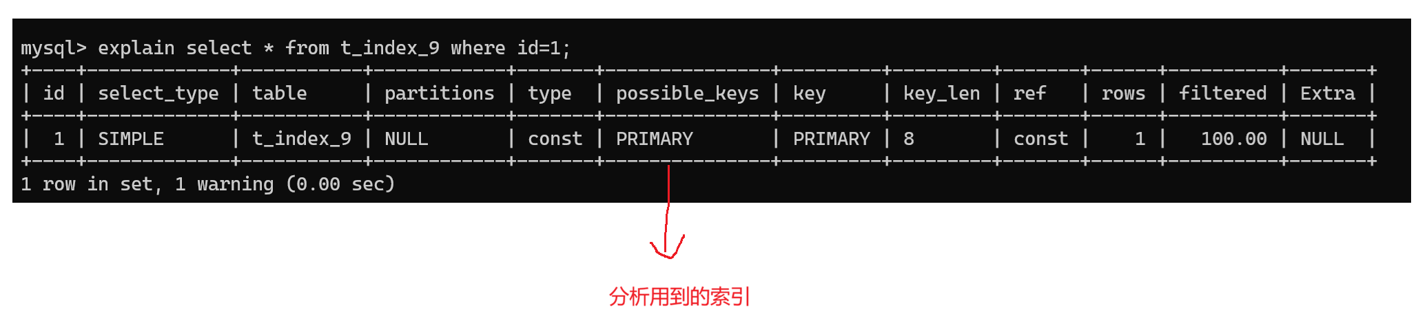 2.使用主键索引查询