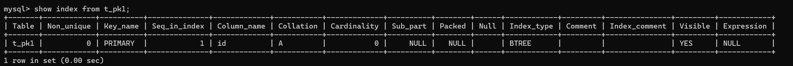 CREATE TABLE t_pk1(