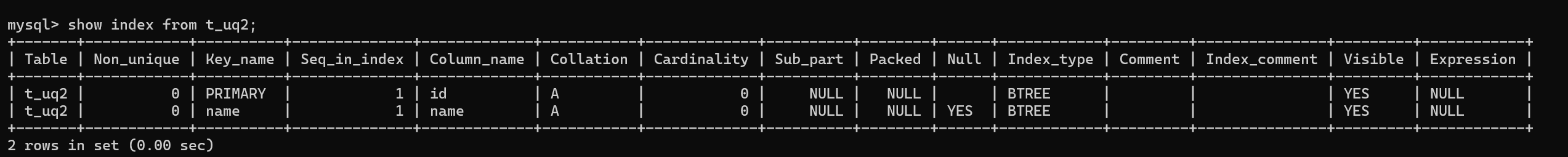 CREATE TABLE t_index2(