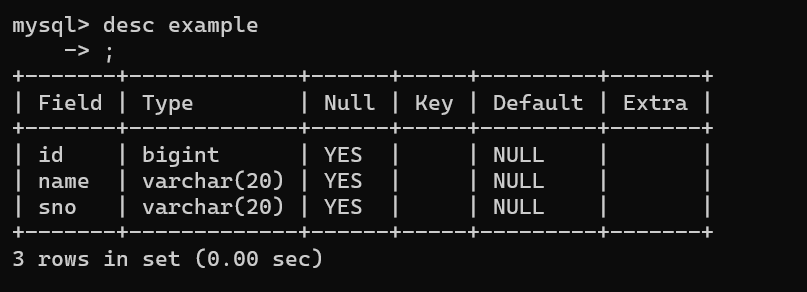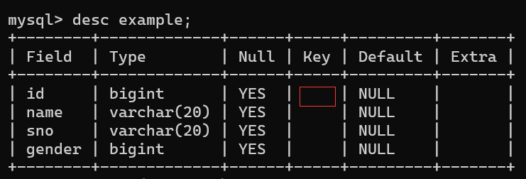 将example表中的gender改为可以为not null