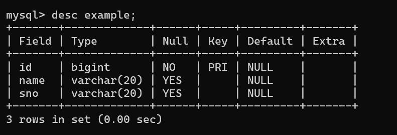 alter table example add primary key(id);