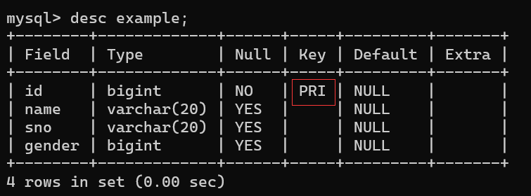 2.创建表时,单独指定主键列