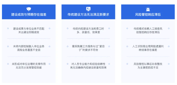 · 传统内控建设方法耗费工时多、质量低、效果差;