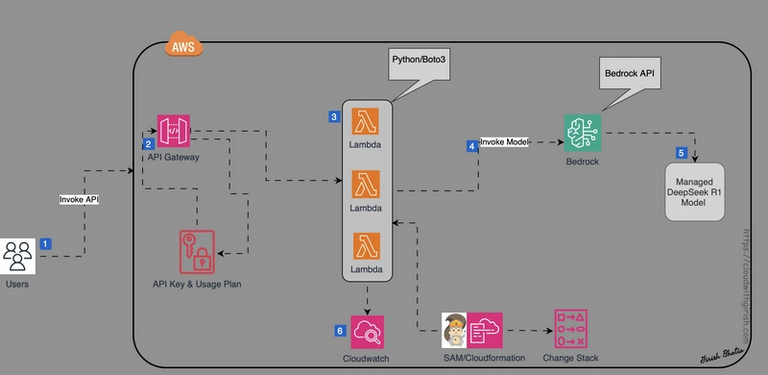 - Amazon Bedrock 负责托管并调用DeepSeek R1模型;