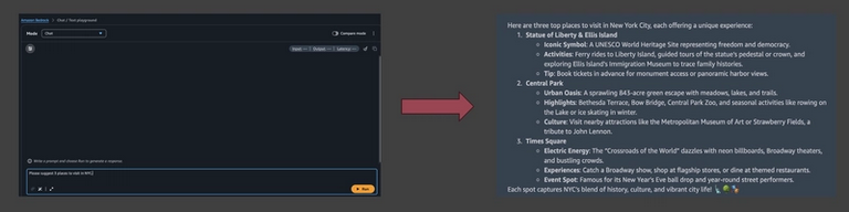 获批后,可直接在 Bedrock Playground 中体验模型功能。输入一个提示词,例如: