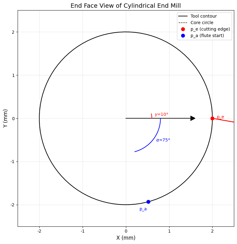 ax.set_title('End Face View of Cylindrical End Mill', fontsize=14)