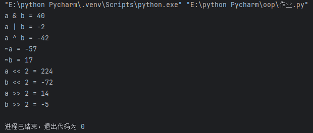print(f"a ^ b = {xor_result}") # 输出:-42