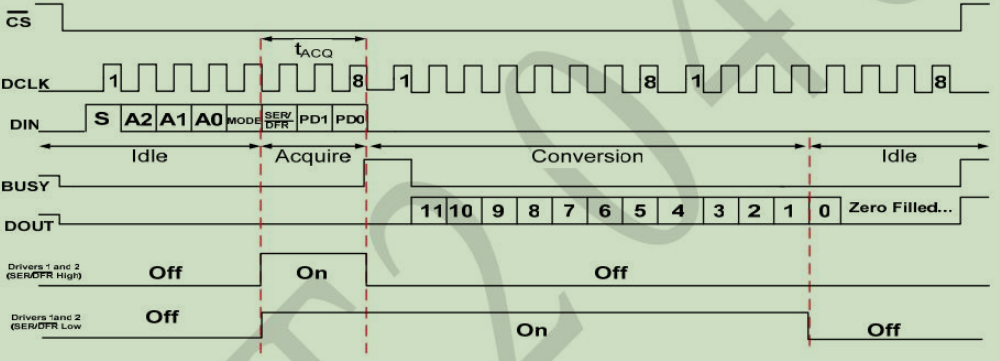 一次完整的转换需要24个串行时钟(DCLK)来完成