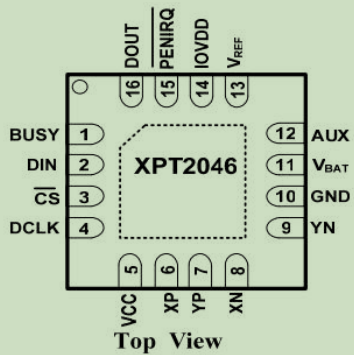 XPT2046 采用微小的封装形式:TSSOP-16,QNF-16 和 VFBGA-48。