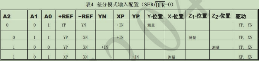 注意:差分模式仅用于X坐标、Y坐标和触摸压力的测量,其他测量要求采用单端模式