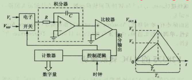采用双积分型的AD转换器有电子开关、积分器、比较器和控制逻辑等部件组成