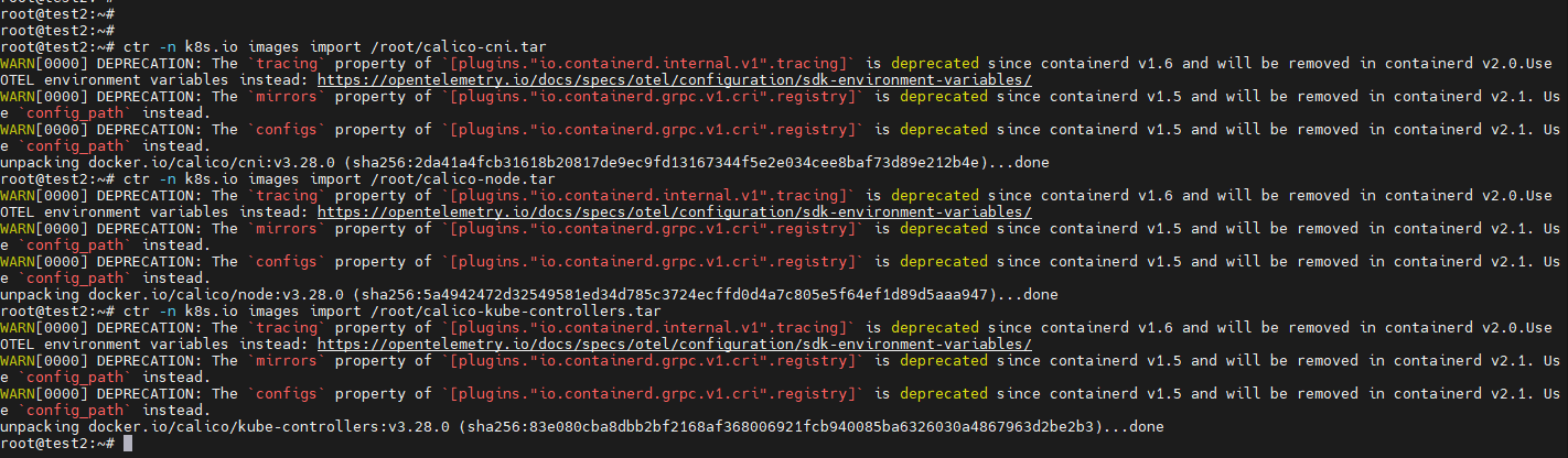 ctr -n k8s.io images import /root/calico-cni.tar