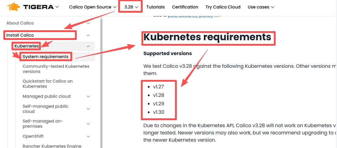如下图我们就可以看到calico3.28兼容K8S的1.28版本