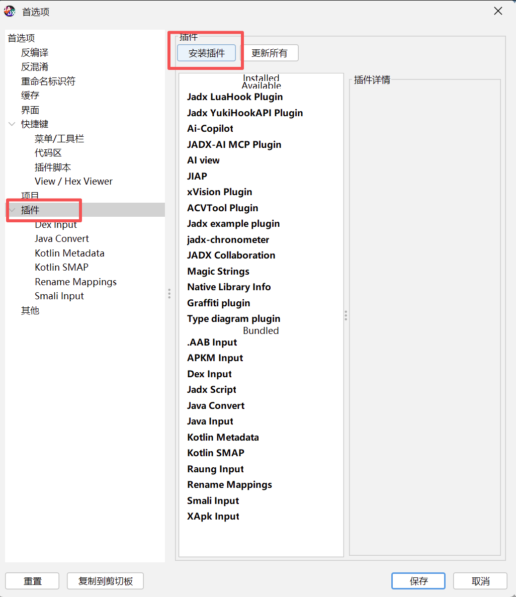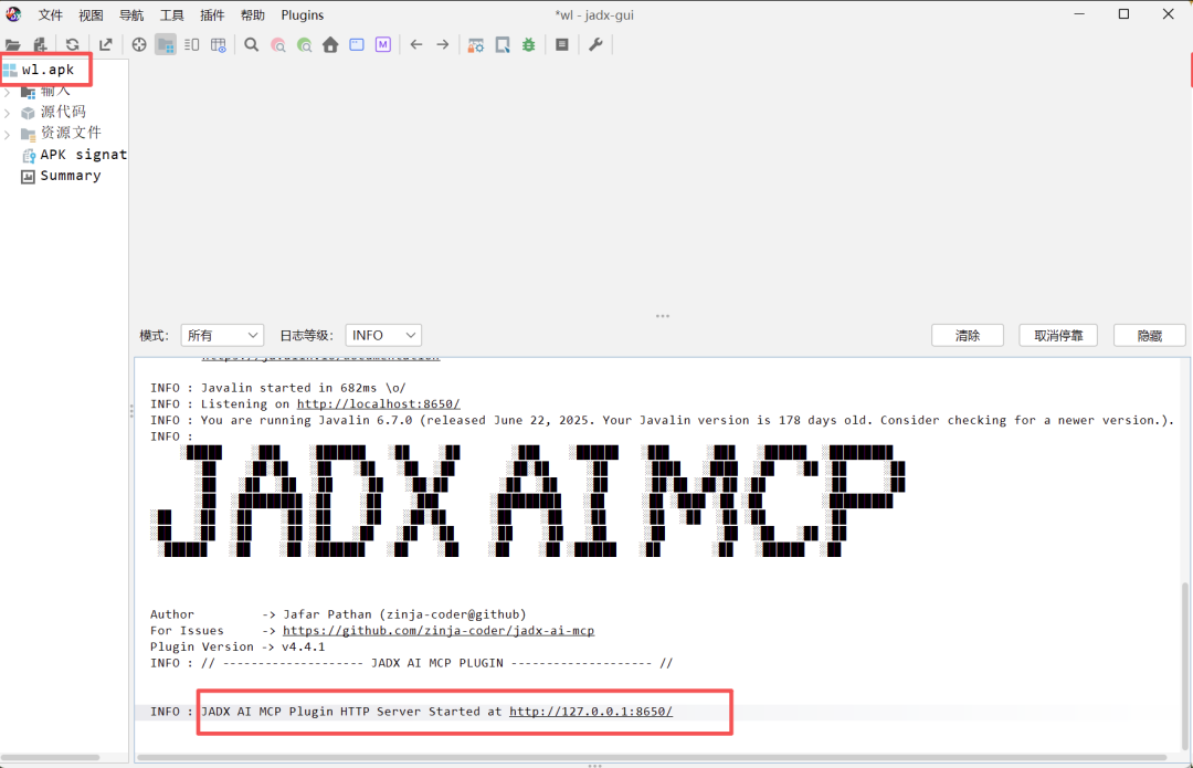 下载jadx-ai-mcp插件包,包括jar文件和server端。